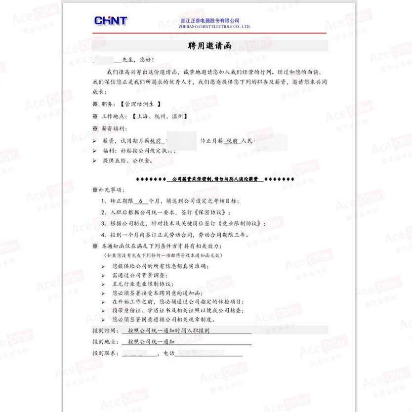 offer : 天正电气人力岗