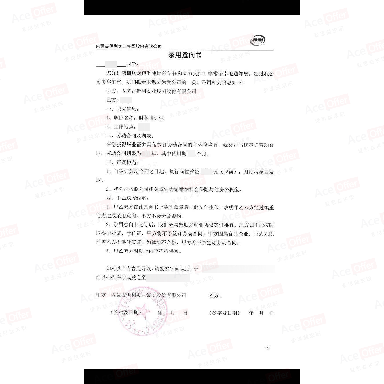 offer : 蒙牛销售管培