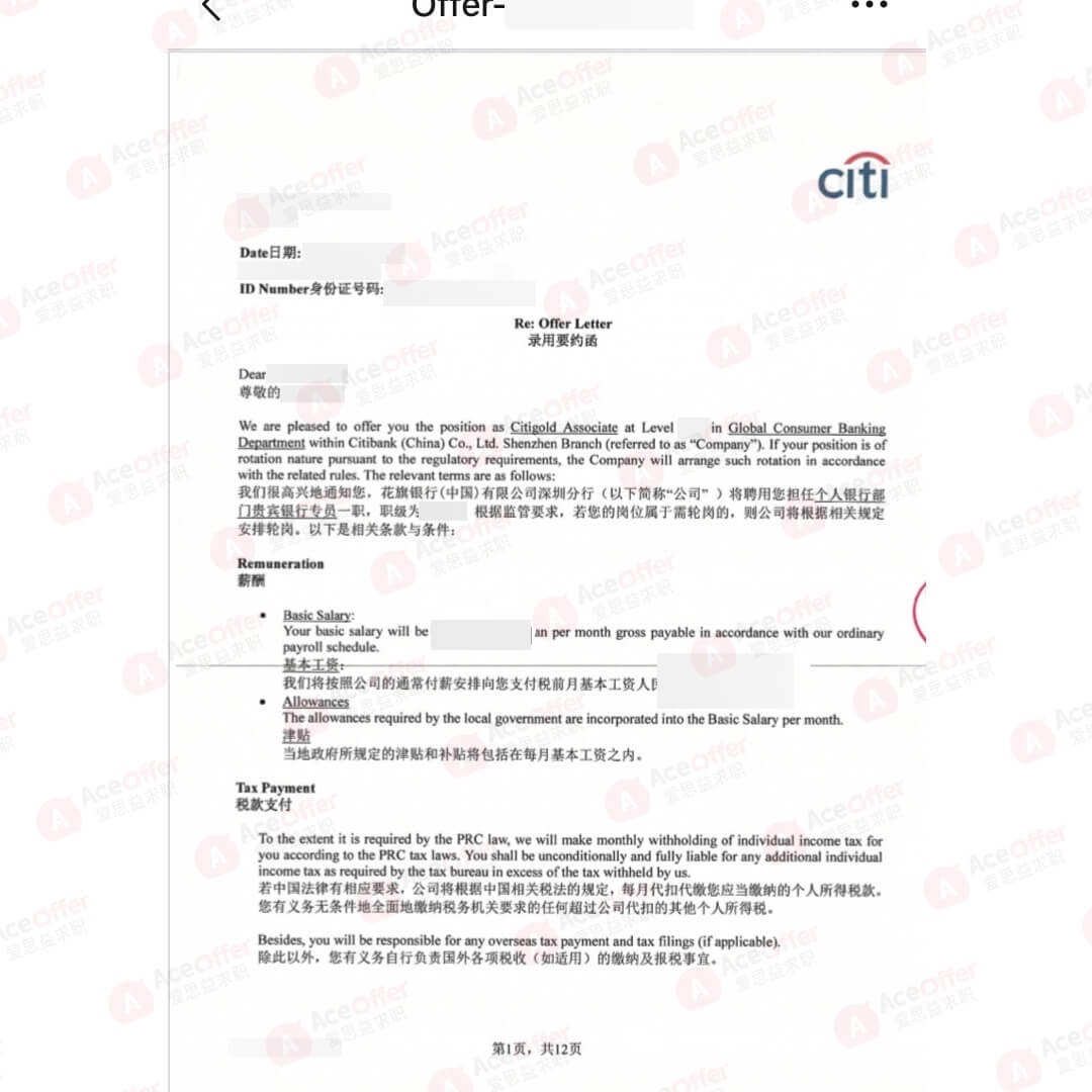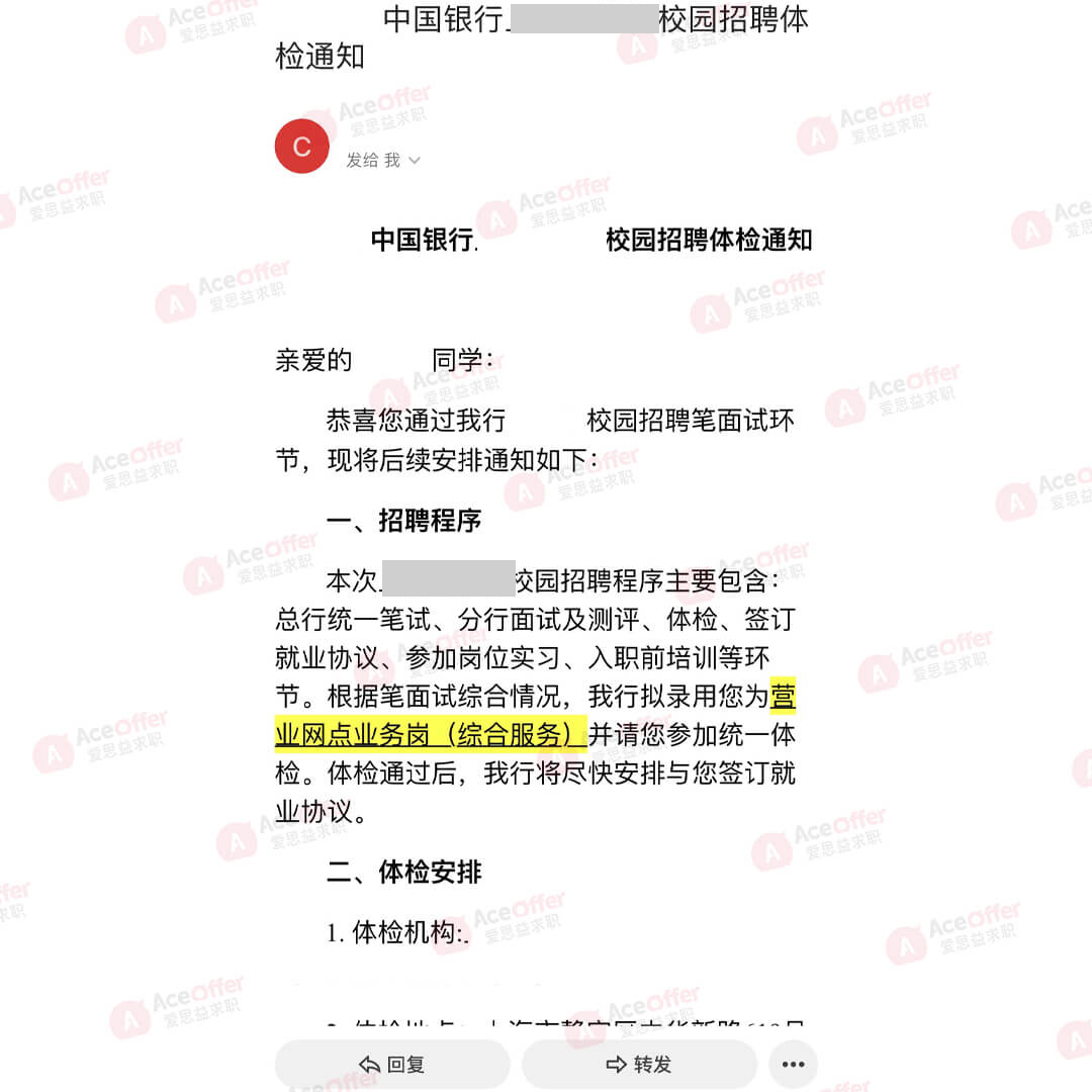 offer : 中国建设银行的管培生